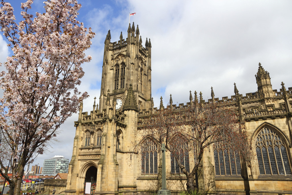 Iglesia de Santa Ana. Su nombre rinde homenaje a la patrona de la Iglesia, Anna Lady Bland. A comienzos del Siglo XVIII Mánchester era un pequeño pueblo rural con casas de entramado de madera. Un campo de maíz, Field Acres, que ahora es la Plaza de Santa Ana se convirtió en el lugar de la Iglesia. La torre marcaba el centro de la ciudad.