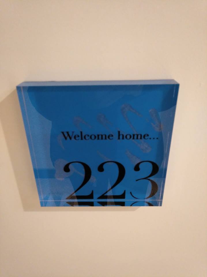 Y otro bonito detalle, cada habitación tiene un mensaje en el cartel con el número. El nuestro era este 'Welcome home'.
