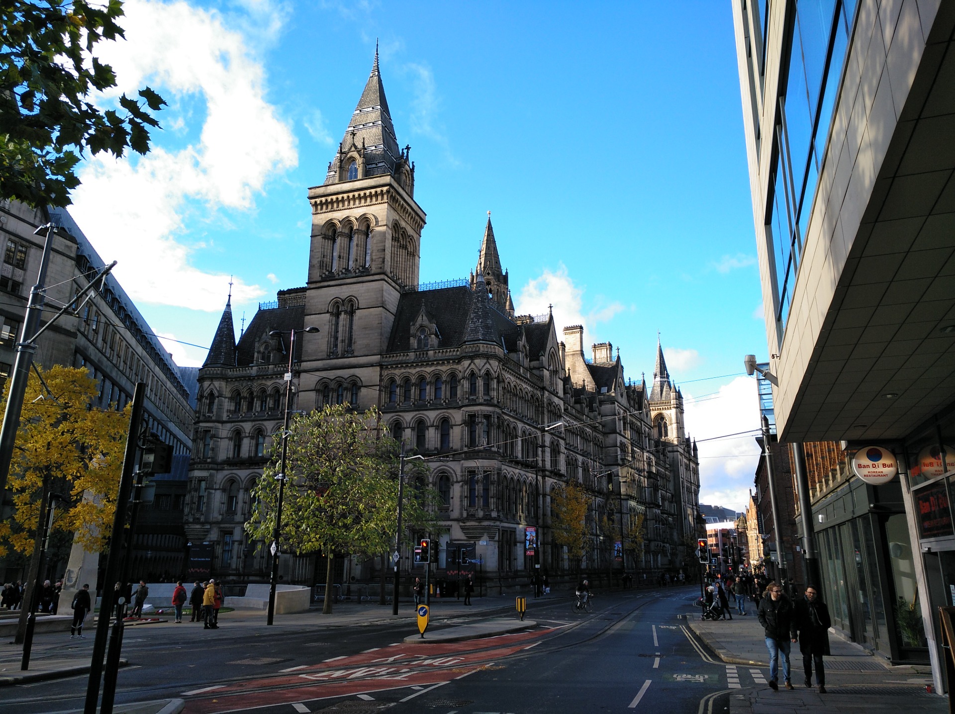 Town Hall, El Ayuntamiento de Mánchester en Albert Square es un de los platos fuertes. Un impresionante edificio neo-gótico del año 1877 con una torre de 87 metros que recuerda un poco al grandioso Big Ben. La fachada está esculpida en piedra representando a los personajes más importantes de la historia de la ciudad. A sus pies nos encontramos con un gran mercadillo navideño y un gigantesco Papá Noel bajo la Torre del Reloj. Hay que ir de día y de noche para verlo todo iluminado y no dejar de tomarte un Vino caliente o un chocolate con nata que te entona el cuerpo. Te lo sirven en unas tazas típicas de navidad y te las cobran para que te las quedes. En caso de que no las quieras al devolverlas te dan el dinero.