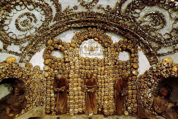 Una frase lapidaria advierte al visitante ya dentro de la cripta: "Aquello que vosotros sois, nosotros éramos; aquello que nosotros somos, vosotros seréis". Te adentras a través de seis capillas plagadas de huesos y cuerpos de frailes que son una pura metáfora de la muerte, de que la vida puede ser apenas el segundo que precede a la Eternidad.